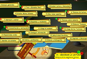 El Ministerio de Educación, Cultura y Deporte de España, a través del Instituto Nacional de Tecnologías Educativas y de Formación del Profesorado nos comparte la WEB Aprende a Estudiar, con diferentes recursos para optimizar los hábitos de estudio. La página se divide en 20 ítems que entregan diferentes estrategías y técnicas para mejorar la forma de estudio de nuestros estudiantes. El ítem 21 presenta un interesante recurso con el fin de mejorar las competencias lectoras.Por último, el orientador-docente los puede utilizar en el día a día o utilizar los aspectos más relevantes de acuerdo a las características propias de su grupo-curso.