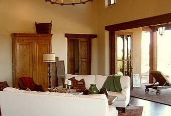 Interesantes interiores en estilo rustico mexicano o Santa Fe.Con sus muros gruesos en tonos tierra, de pequenas ventanas, y sus clasicos artefactos y accesorios en hierro forjado.