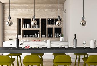 Hemos intentado empaparnos de este mundo bastante desconocido para nosotros, hemos caminado entre vides y cepas para conocer de tú a tú a nuestro protagonista. Lo hemos traído al siglo XXI y dispuesto en un espacio envuelto de materiales tradicionales, nobles y fieles al hombre. El campo lo acompaña en un papel de pared floral y el resto intenta equilibrar con tonos más suaves todo el potencial de éste. Hemos evitado colores que lo representen, hemos preferido basarnos en sus orígenes, en la luz, la vegetación, y materiales.