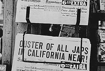 La prensa californiana (en la foto puede leerse el titular entre exclamaciones de "¡Expulsión de todos los japos de California!") anunció la deportación de todas las personas con antepasados japoneses residentes en California. Para algunos no era más que una jugada populista, dado que el sentimiento antijaponés tras Pearl Harbor y la guerra en el Pacífico era muy grande.
