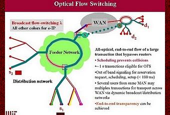Chan afirma que ha logrado eliminar esa ineficiente conversión gracias a un nuevo diseño de red que se basa en lo que han llamado la “conmutación de flujo”. El sistema trabaja estableciendo una ruta de acceso a través de la red entre dos puntos de afluencia de datos masiva. Para ciertas longitudes de onda de la luz, los routers situados a lo largo de ese camino sólo podrían aceptar las señales que vienen de una única dirección y enviarlas en un solo sentido. Como no hay posibilidad de que las señales lleguen desde varias direcciones, nunca habría necesidad de almacenarlas en la memoria y, por tanto, no se necesita convertir la señal óptica en eléctrica.