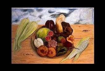 Frida Kahlo " Los frutos de la tierra "Los estudiantes del segundo de bachillerato, intervinieron las imágenes de los bodegones siguiendo las instrucciones:1.- Cortar la imagen en tiras o en cuadrados y pegarlas en la cartulina.