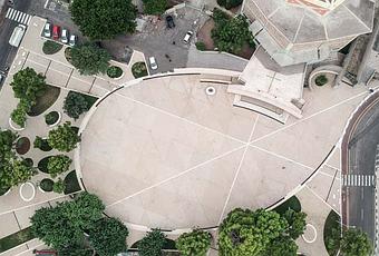 Renovación de la Piazza San Michele, VPS Architetti El diseño de la Piazza San Michele, el principal espacio público de una de las "periferias centrales" de Cagliari, se basó en los principales elementos geométricos y espaciales del lugar: La Vía Abruzzi original, que cruzó la plaza hasta los años 70; el eje de la iglesia; y el espacio ovalado de la plaza determinado por las posiciones de los grandes árboles, en particular los pinos. La calle y los ejes se cruzan en el óvalo para definir los principales caminos de acceso que, a su vez, determinan los sectores arbolados que forman el borde de la plaza.