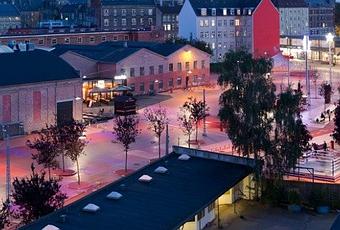 Además de las instalaciones culturales y deportivas, la Plaza Roja crea el marco para un mercado urbano que atrae cada fin de semana a visitantes de Copenhague y de los suburbios.