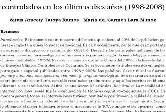 Intervenciones no farmacológicas en el insomnio primario: la evidencia de los ensayos clínicos controlados en los últimos diez años (1998-2008)Silvia Tafoya y María del Carmen LaraRev. Colomb. Psiquiat. 2011; 40(2): 310-335 Revista Espiritualidad