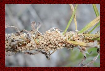 Resalta la gran cantidad de semillas que producen,una estrategia que les otorga grandes posibilidades de pervivir y que puede ser confundido por algunas personas incluso con puestas de insectos(aunque no creo que gente que sepa algo de campo las confunda).Si la semilla germina y no tiene huesped se mantiene verde pero muere a los pocos días.