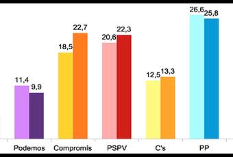 Etiquetas: Ciudadanos, Compromís, Comunidad Valenciana, España, EUPV, Invest Group, IU, PODEMOS, PP, PSOE, PSPV, UP