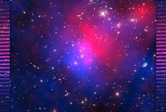 En otra parte del cúmulo parece haber galaxias y materia oscura, pero no gas. El gas puede haber sido eliminado durante la colisión, dejando atrás sólo una débil estela.