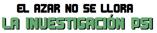 APÚNTATE YA A LA INVESTIGACIÓN PSI EN DOS SENCILLOS PASOS:-Asegúrate de ser seguidor de un blog colaborador de LA INVESTIGACIÓN PSI (por ejemplo, este mismo)-Elige al menos una de estas tres opciones que te ofrecemos en redes sociales: dar a me gusta en la página Investigación PSI en Facebook, hacerte seguidor de @elazarnosellora en Twitter o añadir a El azar no se llora a tus círculos en Google + .