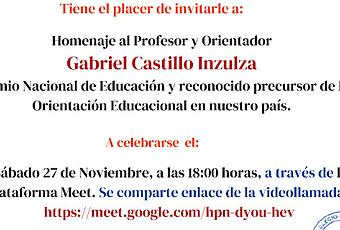 Se comparte invitación del Colegio Nacional de Orientadores de Chile A.G. al Homenaje del Profesor y Orientador Gabriel Castillo Inzulza.