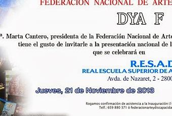 La Integral Psicodanza se complace en invitarles a la presentación nacional de la FNAD, DYA F, que se celebrará en Madrid en la Real Escuela Superior de Arte Dramático R.S.E.A.D., en la que La Integral Psicodanza es una de las compañías que actúa dentro de la Gala que tendrá lugar a las 18.30 horas el día 21 de Noviembre.