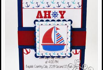 Invitación Tema Búho Marinero.Escogí el clásico azul marino y un rojo vino además de papel decorado con anclas.Un cintillo y no tenemos necesidad de agregar un sobre.