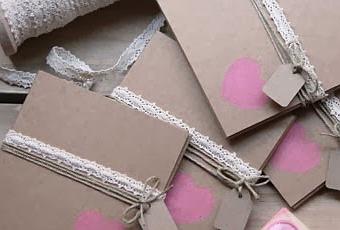 A mi me encanta la combinación de blondas de papel con el kraft. Le da un toque super romántico a las invitaciones. También me gusta mucho como queda el efecto del kraft con sellos o tinta de color blanco. Otra opción es hacer las invitaciones en otro tipo de papel, pero que el sobre sea de kraft.