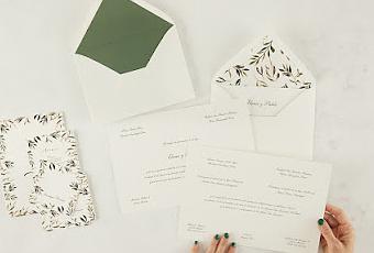 5.1. En El Tintero caligrafía puedes ver ejemplos de invitaciones personalizadas aunque también puedes consultar las invitaciones semi personalizadas como el top ventas Olivos, su colección más campestre, fresca y elegante.