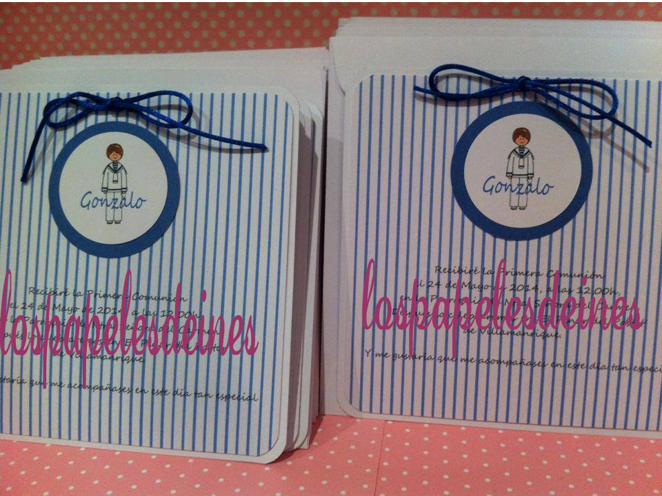 Os dejamos las invitaciones de comunión que hemos hecho en raya azulona, decorada con el dibujo del niño cadeteInvitaciones de comuniónInvitaciones de comunión