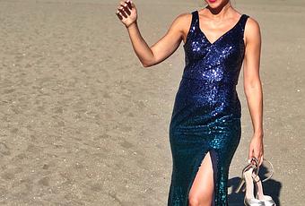 Se adapta al cuerpo como un guante (yo llevo la talla S), no cuesta más de 60€ y es tan bonito como veis en las fotos, con las lentejuelas en degradado azul noche y verde esmeralda. Lo tenéis en la web de Ever Pretty, y por favor que alguien me invite a un eventazo para poder lucirlo, que en la playa me miran raro.