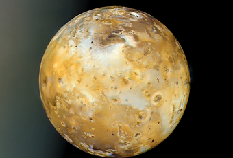 Ío es el satélite más cercano a Júpiter descubierto por Galileo en 1610, es el cuerpo del sistema solar con más actividad volcánica – más de 400 volcanes activos – provocados por la enorme fuerza de marea del planeta joviano y de los satélites Europa y Ganímedes.