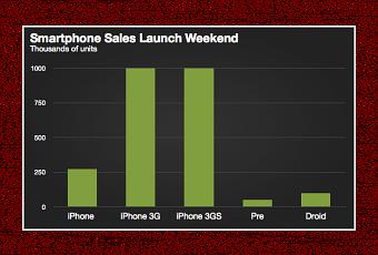1. La cifra de ventas del primer día: fueron 300.000, muy por debajo de lo que algunos preveían (algunos pronosticaban el doble) y algo más de un 30% de las ventas del iPhone 3G o 3GS.