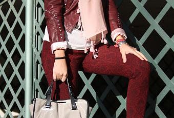Que os parece? a mi me gusta mucho la combinación de burdeos con gris y el toque rosa que le quita dureza al burdeos. El pañuelo es un regalo de reyes de mi prima y es de Uterqüe y el bolso de Bimba & Lola de hace tiempo.