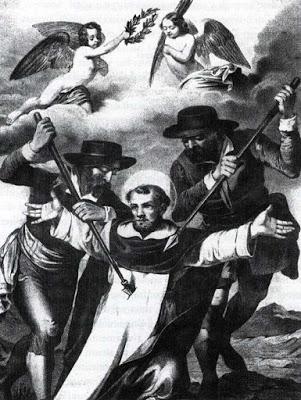 Bartolomé nació en Savigliano, en 1420, y desde niño demostró gran inteligencia y extrema piedad. Estudió en su ciudad natal y a los 16 años fue a Turín, donde continuó sus estudios, licenciándose en 1452. Hay que decir que obtuvo, en un mismo día, la licenciatura, el doctorado y la maestría en Teología. La misma universidad le empleó como profesor, con gozo de los estudiantes. Mas hubo de volver a Savigilano, pues el Capítulo Provincial de la Orden le nombró prior del convento de esta ciudad. Ese mismo año, 1452, fue nombrado Inquisidor Mayor de la zona del Piamonte, cargo que conllevaba aparejado un peligro para la vida, pues esta era un área infestada de herejes. Durante 12 años predicó, convirtió a muchos, juzgó rectamente.En 1466 fue destinado extirpar la herejía de Cerveri. Antes de partir ya supo por revelación que sería su última misión, mas obedeció sin más. Hizo confesión general y al terminar dijo a su confesor: "Me llamarán Bartolomé de Cerverio, aunque nunca he puesto un pie allí. Hoy voy allí como inquisidor y allí debo morir". Y partió el 21 de abril, junto a los religiosos Juan Boscato y Juan Pedro Riccardi. Llegando a la ciudad, mientras recitaban el salterio fueron atacados por 5 herejes valdenses. Los otros frailes fueron apuñalados, pero pudieron escapar. Bartolomé no intentó huir, sino que recibió de rodillas la lluvia de lanzas que cayó sobre él, mientras alababa a Dios.Esa noche, los habitantes de Savigliano pudieron ver unas luces brillantes en el cielo, en dirección a Cerveri y salieron para ver que ocurría. Así hallaron a la vera del camino el santo cuerpo de su querido dominico. Apuñalado, mas no había sangrado, sucedió que apenas pusieron el cuerpo en la iglesia, las heridas manaron sangre fresca y olorosa, la cual fue recogida como preciosa reliquia en sendos vasos. Fue sepultado en la iglesia y desde entonces venerado como mártir. En el sitio donde cayó, se levantó una capilla donde recibe culto por parte de los habitantes de Savigliano y Cerveri, quienes le invocan contra los truenos y el granizo principalmente. En 1802, suprimido el convento de Savigliano, las reliquias fueron trasladadas a Cerveri.El papa Pío IX aprobó su culto inmemorial, beatificándole, en 1853.Fuente: http://har22201.blogspot.com/