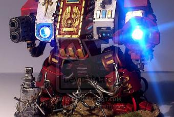 Acostumbrado a ver usar las led para otras cosas(Ya sabéis, hacer de luces en plan focos o iluminar los visores de un tanque,por ejemplo),me ha parecido una idea bastante novedosa el verlo usar para esto.Y con la forma que tienen los Dread imperiales de plástico no es muy complicado,la verdad.