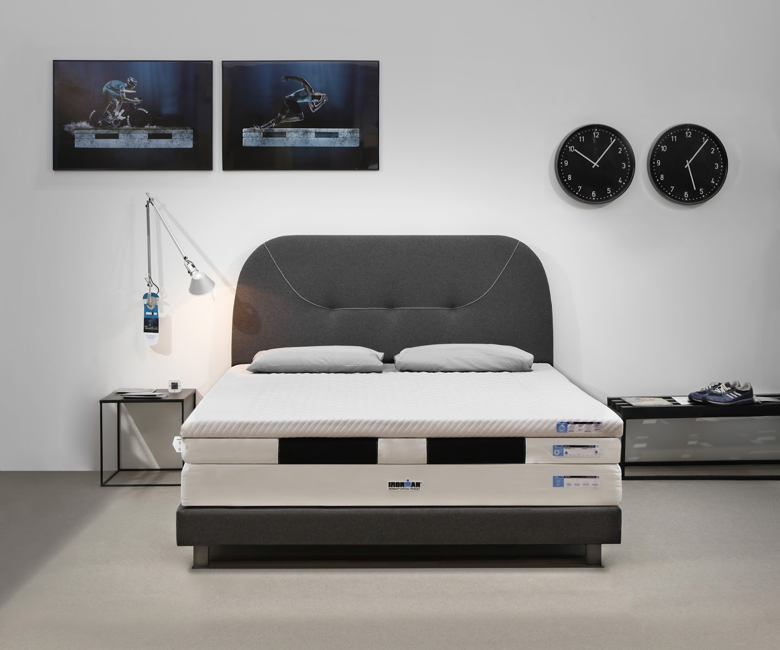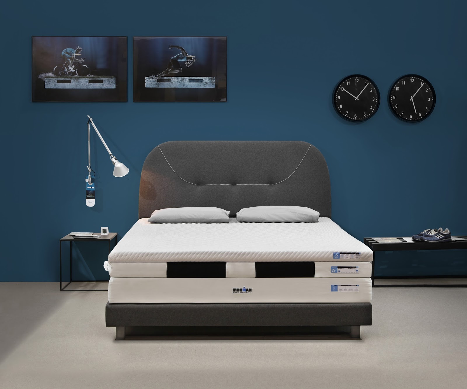 Ecus piensa en las personas con necesidades de alto rendimiento físico-deportivo y crea IRONMAN ‘ACTIVE RECOVERY EQUIPMENT’T24.7®, un nuevo concepto de recuperación avanzada desarrollado por especialistas del descanso activo: el colchón que permite seguir entrenando mientras descansamos.El colchón T24.7 ofrece una extraordinaria calidad de descanso y un efecto revitalizador y energetizante gracias a las tecnologías Celliant y Thermic.Con Celliant, Ecus garantiza la máxima recuperación e incremento del rendimiento físico. Las fibras y minerales ópticamente sensibles se unen a factores como la energía electromagnética del cuerpo, la luz solar y las ondas infrarrojas del entorno, influyendo sobre el cuerpo un aumento del flujo sanguíneo, mayor oxigenación de los tejidos, reparto uniforme de la temperatura corporal, alivio sintomático de artritis, diabetes y dolores musculares.Por otro lado, Rafrechi con las micro-cápsulas de PCM (materiales inteligentes de cambio de estado) insertadas en las fibras que componen el tejido aseguran un microclima de temperatura equilibrado, reducción de la transpiración, reducción del riesgo de hipotermia y eliminación de los picos de temperatura cercanos al cuerpo.