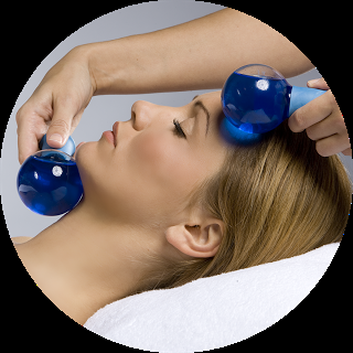 * Masaje/deslizamientos muy suaves con los globos azules fríos. Sensación de frescor, relajación y bienestar. Aclarado con agua y secado de la piel.