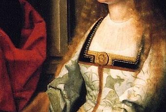 Isabel I de Castilla representada en una parte del cuadro apodado "La Virgen de la mosca", de 1520 y de autor desconocido.