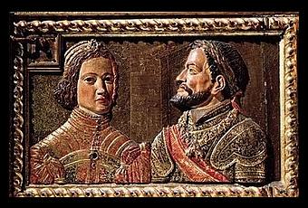 Isabel de Portugal y Carlos VHija de Manuel I de Portugal y de María de Aragón, Isabel de Portugal contrajo matrimonio con su primo, el emperador Carlos V (el rey español Carlos I), en 1526 y hubo de actuar como regente en las ausencias de su marido. El 26 de julio de 1529 firmó con Francisco Pizarro las capitulaciones para la conquista del Perú, el territorio sudamericano cuyo nombre oficial fue inicialmente el de Nueva Castilla. La imagen reproduce un relieve en madera con las efigies de Isabel y Carlos, obra del escultor español Alonso de Mena (1632), que se encuentra en la capilla Real de Granada.Isabel de Portugal (1503-1539), emperatriz de origen portugués, prima y esposa del emperador Carlos V (Carlos I de España). Hija de Manuel I de Portugal y de María de Aragón, su matrimonio (1526) supuso la continuación de la política matrimonial de los Reyes Católicos para alcanzar la unión de Castilla y Portugal. Pero además, para el emperador esta boda suponía un signo de hispanización necesario para ganarse el favor de sus súbditos. Su popularidad entre los castellanos se incrementó cuando un año después de su boda dio un heredero, Felipe —el futuro Felipe II—, en el que se harían realidad los deseos de unidad. Actuó como regente en las ausencias de su marido.