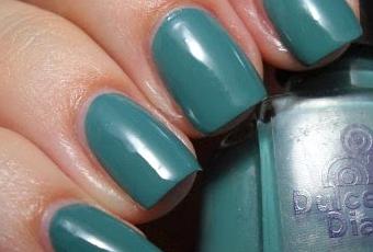 Es un esmalte creme, como decía, en esos tonos de verdes con un toque de gris que me enamoran... verde petróleo lo calificaría yo. Fórmula súper amigable... corre perfecto, se autonivela y queda prolijita.