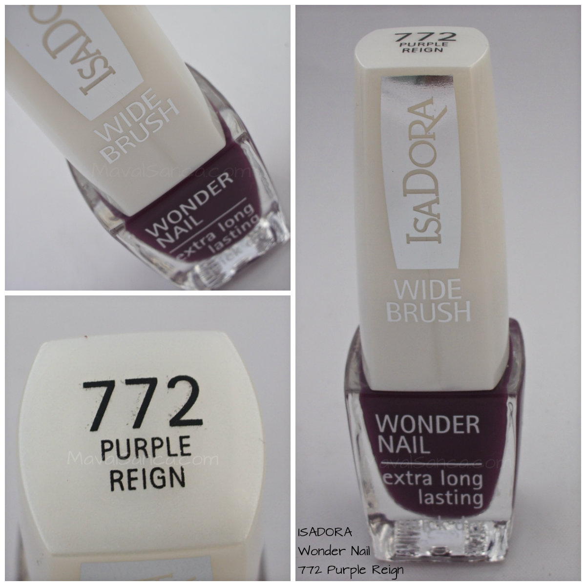 La textura del esmalte de uñas Wonder Nail 772 Purple Reign de Isadora es muy fluida lo que facilita la aplicación. Además el esmalte de uñas es muy pigmentado y con su pincel, wide brush, que es más ancho de lo normal, se cubre de una sola pasada toda la uña.Texture of 772 Purple Reign Wonder Nail nail polish from Isadora is very fluid which facilitates the application.Besides nail polish is very pigmented and with its brush, wide brush, which is wider than normal, each nail is covered in a single pass.ISADORA Fall 2013Wonder Nail772 Purple Reign