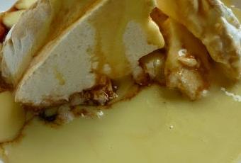 Isla flotante.Batir a punto de nieve 3 claras de huevo junto a un pizca de sal, e ir agregando 150 gr de azúcar en forma de lluvia, ralladura de 1 limón, 1 cucharadita de harina de maíz y 1 cucharadita de royal.Colocar en budinera para microondas acaramelada de 18-20 cm. de diámetro.Cocinar 2 minutos 30 a 100 de potencia. Desmoldar fría