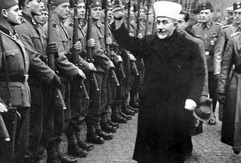 Amin al-Husayni, gran muftí de Jerusalén, pasa revista a las tropas de la División Handžar en noviembre de 1943. Fuente: Wikimedia