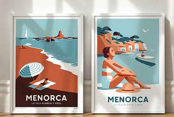 Casi desde el principio empezaron a trabajar con nosotros atraídas por «la calidad de impresión y acabados de algunos de sus trabajos editoriales», nos cuentan. El primer encargo fue la impresión del mapa ilustrado de Ciutadella, al que se han sumado con éxito el de Menorca y, más recientemente, el de Maó. Entre los últimos encargos destaca la serie de ilustraciones La isla blanca y azul, con la que Island Mood recupera el espíritu vintage de los carteles turísticos de mediados del siglo xx.