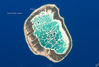 El archipiélago de Tuamotu es parte de la Polinesia Francesa y forma la mayor cadena de atolones en el mundo. Esta fotografía de un astronauta muestra al atolón Mataiva, el más occidental de la cadena de Tuamotu.