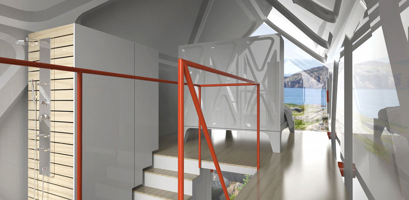 " Concebido por Frank Tjepkema de Tjep , la casa inteligente asegura la mínima dependencia de combustible. Desde su exterior, un árbol solar de paneles fotovoltaicos circulares que se extiende desde el techo, siguiendo el movimiento del sol
