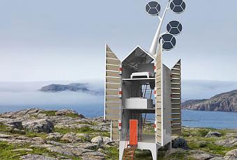 Una estufa de madera se construye en una cavidad en el lateral de la casa, y se puede acceder desde el exterior y el interior - con el almacenamiento de madera situada en el exterior, fácilmente accesible desde la sala de estar. un sistema de calefacción- también alimentado eléctricamente a través de la energía solar recogida - está integrado en la estructura, calentando el interior utilizando el calor que se emite desde la estufa.