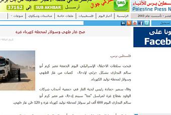 No menos de 600.000 litros de diesel entraran hoy a la central eléctrica de Gaza por el paso israelí de Kerem Shalom, ademas de otras 120 toneladas de gas para cocinar.