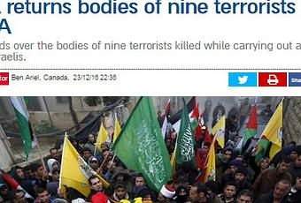 Israel entregó el viernes a la Autoridad Palestina los cuerpos de nueve terroristas muertos en el ejercicio de los ataques contra soldados y civiles israelíes, cinco de los cuales eran de Hebron.