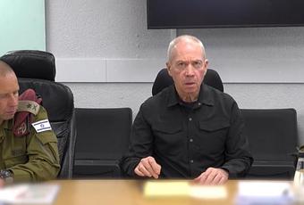 - El ministro de asuntos militares de Israel, Yoav Gallant, en una reunión con oficiales sionistas.