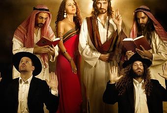 ¿Qué no puede unir la música? Unos Israelíes, con Kaffiyya en ristre y con ritmos árabes y con una imágen cargada de simbolismo.