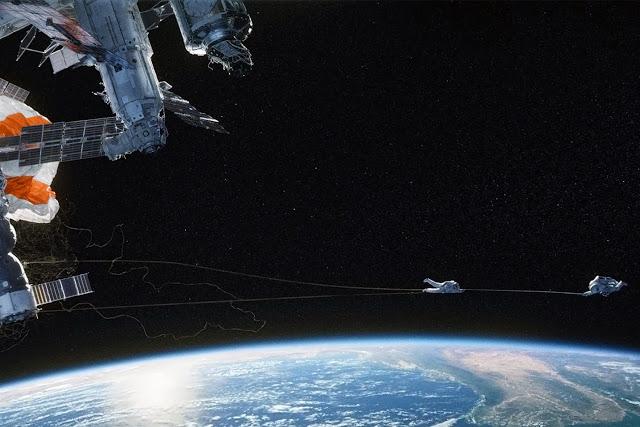 El espacio exterior inunda la pantalla y, ante la imagen poderosa de la Tierra, el objetivo se va acercando a un pequeño artefacto que, a medida que va ganando proximidad, resulta ser un transbordador espacial norteamericano que está conectado al satélite Hubble. Pronto descubrimos que la doctora en ingeniería Ryan Stone (Sandra Bullock) está realizando labores de actualización de los sistemas del satélite en su primera misión en el espacio. Hay otros miembros en la tripulación pero el que más destaca es el comandante Matt Kowalski (George Clooney), un veterano astronauta en su última aventura más allá de la atmósfera. Equipado con un jetpack disfruta de las imponentes vistas mientras descubre su carácter abierto y socarrón, un signo inequívoco de lo poco que le impacta estar libre en el vacío espacial tras tanta experiencia acumulada. Dos personajes, por tanto, que establecen un interesante contrapunto al estar en polos opuestos en cuanto a la vivencia de la situación. Vemos que Stone está realizando su trabajo muy presionada y los signos vitales la delatan ante el control de misión. Pero todo cambiará cuando un ensayo de un misil antisatélite, lanzado por los rusos contra uno de sus "pájaros", acaba provocando una nube de escombros que está destruyendo a otros dispositivos en cadena. La amenaza para el Explorer es inminente pero ninguna de las maniobras de emergencia consigue el efecto deseado y la destrucción del transbordador deja a Kowalski y a Stone a la deriva por el frío e inmenso espacio. La historia de superación personal que sigue a continuación es una auténtica epopeya que ensalza lo mejor del espíritu humano. Gravity nos lo cuenta con profusión de detalles.