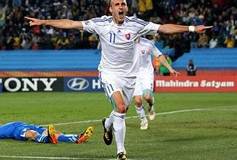 Al minuto 25, Kucka le robó la pelota a De Rossi, sirvió para Vittek, que definió cruzado y venció a Marchetti para el 1-0 de Eslovaquia sobre los últimos campeones del mundo.