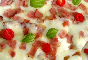 Se suele utilizar también pollo en vez de bacon, y es frecuente añadir unas aceitunas negras picadas, pero yo he preferido prescindir de ellas...