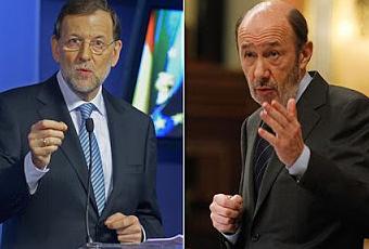 Rajoy y Rubalbaba, frente a frente, caen en picado.La crisis y la corrupción dejaron bajo mínimos a los dos grandes partidos y amenazan con poner fin al bipartidismo según una encuesta de intención de voto publicada el 5 de julio por El Periódico de Catalunya. Los dos partidos mayoritarios caían en picado con respecto a las generales de noviembre de 2011. Si se celebrasen elecciones en ese momento, anunciaba dicho periódico, el PP contaría con un 28% menos de los votos mientras que el PSOE caería un 25,5%. Esto, en número de escaños, se traduce en una pérdida mucho mayor para los de Rajoy (entre 64 y 68 diputados menos), que para las filas socialistas (entre 3 y 6 diputados menos). CiU no sólo perdía un 3% de los votos (entre 4 y 5 escaños menos), también su puesto como tercera fuerza política, que pasaría a manos de IU. Ya entonces la coalición izquierdista subía espectacularmente (15,6%), y conseguía entre 48 y 50 escaños (entre 37 y 39 diputados más). También subía UPyD (12%), que se traducía entre 31 y 33 diputados y el cuarto puesto como fuerza política. Por su parte, ERC conseguía entre 7 y 9 diputados, lo que suponía una subida de un 2,1% en votos. Los tres grandes perdedores, PP, PSOE y CiU, presentaban una fidelidad de voto inferior al 50%. Sólo uno de cada cinco votantes del PP repetiría su decisión de noviembre de 2011. La mitad de ellos pasaría a votar a Rosa Díez mientras que la otra mitad estaría indecisa.Una vez más se demostraba, por mucho que ambos se empeñaran en negarlo, la coincidencia entre PP y UPyD. En este panorama IU y UPyD tendrían la llave de la gobernabilidad pero su apoyo no sería suficiente por lo que sería necesario alcanzar acuerdos con otras formaciones políticas. Tres semanas más tarde, según el sondeo de Metroscopia que publicaba El País el pasado domingo, el panorama mostrado es preocupante para el PP, que desciende vertiginosamente, manteniéndose al 23%, al igual que el PSOE, que ha logrado remontar en intención de voto, conservándose junto al PP, aunque sin conseguir superarlo. Los datos de los últimos 5 meses muestran que el PSOE consigue recuperarse levemente hasta alcanzar al PP. UPyD, por el contrario, empieza a descender para situarse en el 11,8% e IU es el único que sigue subiendo y se mantiene en el 16, 2%, mientras que el partido de Rosa Díez comienza a desinflarse. El sondeo de Metroscopia plantea un escenario en el que acudirían a votar apenas un 52% de los ciudadanos con derecho a voto. Esta sería la distribución de escaños en el Congreso con dicha participación.