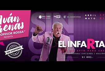 " Ivan Arenas llega por primera vez al El infartable" muestra una cara vulnerable del Profesor Rossa tras la experiencia de haber vivido múltiples infartos y especialmente su última angioplastia. Teatro San Gines para contarnos su historia en un show llamado " El Infartable " anecdotico, curioso y sin censura.