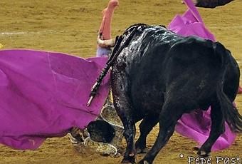 En el festejo nocturno celebrado en la Malagueta, durante la lidia del quinto toro de la ganadería de Luis Algarra, un manso de solemnidad que tenía peligro sordo, el diestro Iván Fandiño resultó cogido de gravedad al intentar ligar un natural con el de pecho.