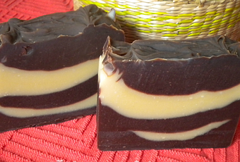 Componentes: leche de coco, agua destilada, hidróxido de sodio, aceites de oliva virgen, girasol, almendras dulces, coco, palma, manteca de cacao, cera de abeja, cacao puro en polvo y aceite esencial de clavo.