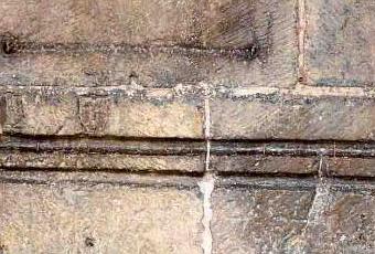 A la derecha de la entrada de la Catedral de Jaca encontramos una de las varas incrustadas en piedra más trabajadas: en lugar de un hueco se ha optado por una simulación tallada de una vara cilíndrica. La portada románica se haya cubierta por un soportal añadido posteriormente y que hace de atrio.