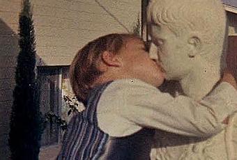 Jackie, con tan sólo año, besando el busto de una estatua situada en el jardín de zu casa